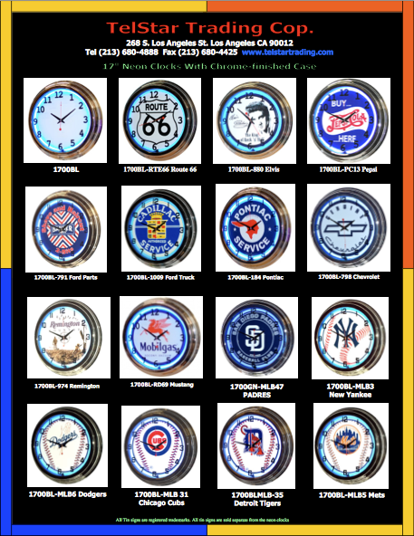 Lamps - Classic 50's - Coke - Disney - Elvis Products - Funkit DJ - Hello Kitty - LoonneyToone/More - Neon Clock - Neon/LED /Motion Picture - Other Products - Plane/Train/Auto - Philco - Popcorn Maker/Fondue - SpongeBob - Spirit - US